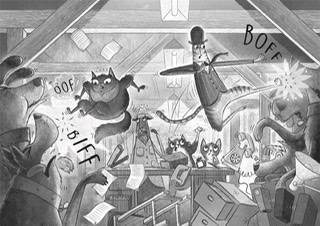 During the day Toto appears to be an ordinary cat, snoozing contentedly alongside her brother Silver in the London townhouse in which they live with their owners. But as night falls things change. Under the cover of darkness Toto is a Ninja Cat, keeping the streets safe from dastardly villains and righting wrongs alongside Silver and her newly adopted brother Socks, in this latest adventure. Our story begins with Toto and her friends looking after the visiting French ambassador whose tour of London culminates at the Tower of London to see the animal world’s most famous jewels, the sacred diamond cat collar. But horror of horrors the collar is missing and Toto’s friends, Larry the Downing Street cat and Cyril the Chief Raven are accused of the crime! Assisted by old friend Catface and other characters Toto, Silver and Socks are determined to clear their friends’ names and to find the missing collar.