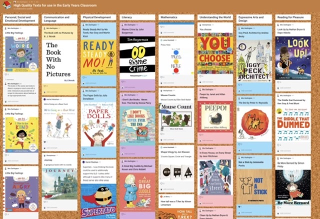 High Quality Texts for Use in the Early Years Classroom – this helpful collaborative Padlet started by Adele Darlington @mrs_darl is full of excellent book suggestions sorted by themes including Personal, Social and Emotional Development, Physical Development, Literacy and Communication and Language.