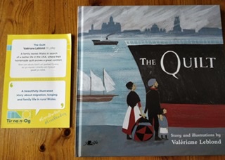 The story is of a family who are struggling to survive in rural north Wales at the turn of the 20th century and decide to emigrate to the USA in search of a better life. It is told from the child’s point of view and the reader watches as the family are forced to sell all of their possessions except for a black and red quilt lovingly hand-made by her mother. The little girl feels homesick and sad at times, but the memories and love contained in the quilt help her overcome this and adapt to her new life. The quilt in many ways comes to symbolise home to the child. There is a great deal of hope in this poignant story and it is apparent that in taking the customs and traditions with them the family are able to recreate the security and familiarity of the land they have left behind. This story could equally apply to all those today who are forced to leave their homes to travel to another land in search of safety and a future.